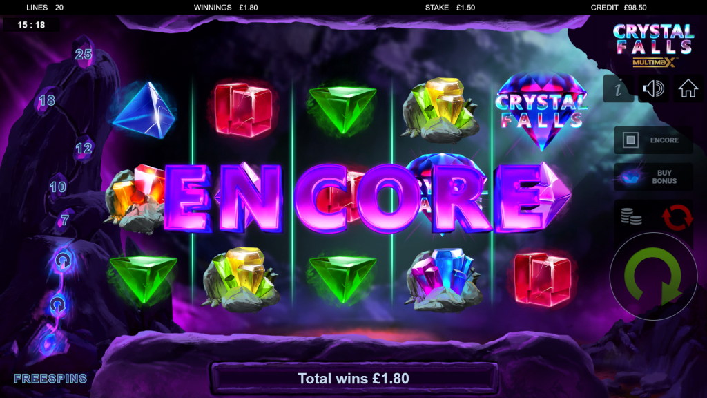 Kamu butuh 4 kemenangan berturut- turut yang mengalir buat memenangkan minimum 7 putaran free, sedangkan 4 kemenangan berturut- turut selanjutnya membagikan 10, 12, 18, serta 25 putaran free, tiap- tiap. Dengan Encore diaktifkan, Kamu memperoleh respin kala Kamu mendarat pada putaran tanpa kemenangan di cascading ke- 2 serta/ ataupun ke- 3, sehingga tingkatkan kesempatan putaran free Kamu.